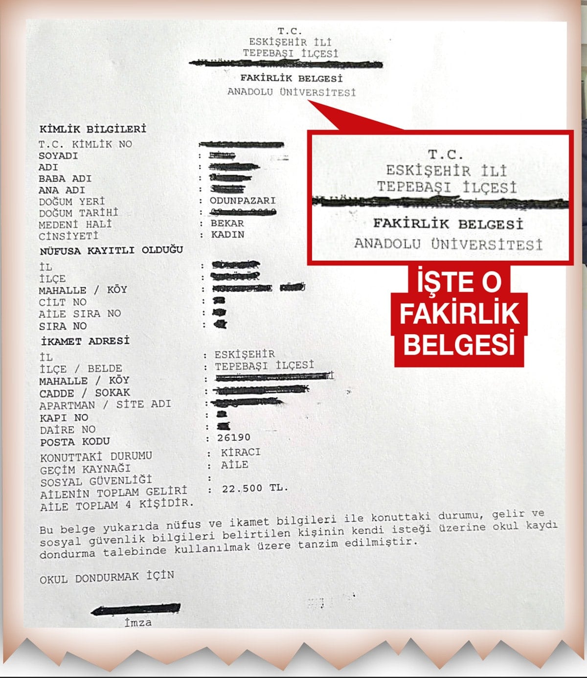 Üniversiteyi kazanan öğrenciler maddi imkansızlık nedeniyle okula devam edemiyor, muhtarlıklardan fakirlik belgesi alıp kayıtlarını donduruyor. Öğrenci kenti Eskişehir’de Yenibağlar Mahallesi muhtarı Mine Türeli “Öğrenciler çok sıkıntılı. Bizden fakirlik belgesi istiyorlar” dedi.