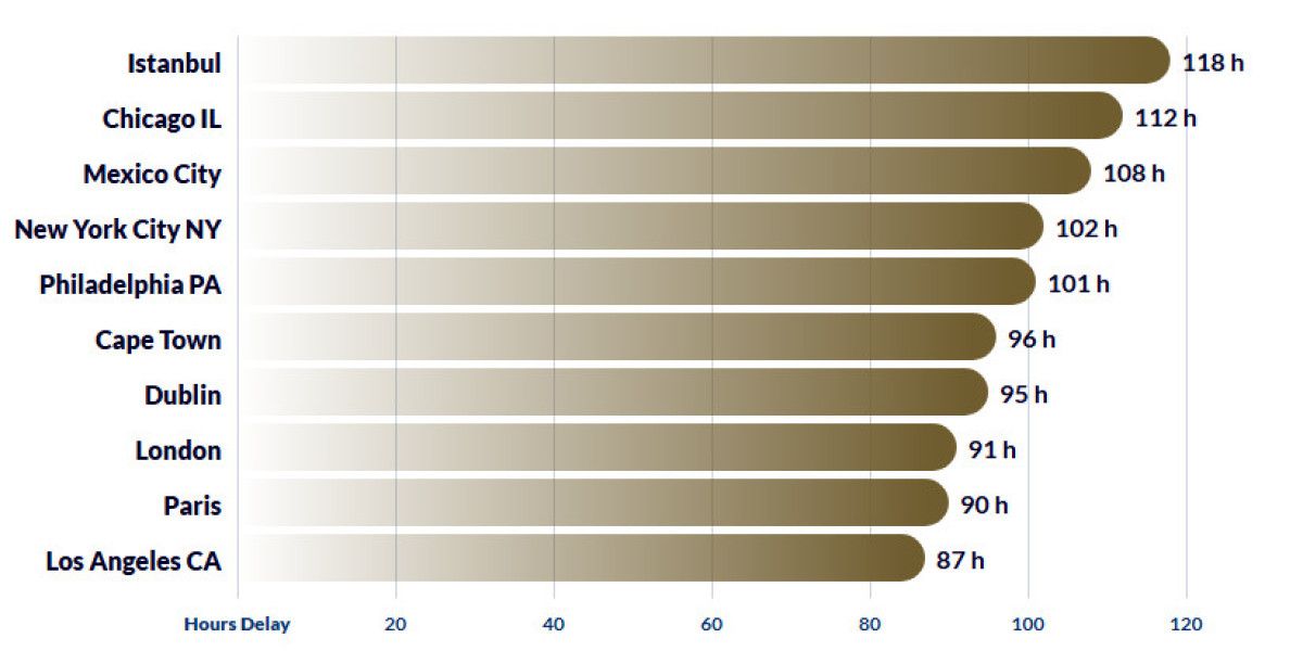 Bu kentleri de 112 saat ile Chicago ve 108 saat ile Mexico City takip ediyor.