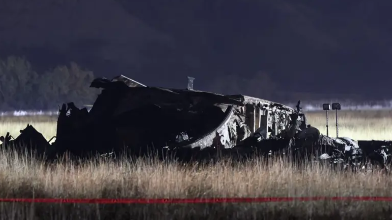 Dört motorlu uçaktan dumanlar yayılmaya başladı ve ana gövde dönerek hızla düşmeye başladı. Kopan ilk parça başka bölgeye düşerken, uçağın havada duman saçarak döndüğü ve bir süre sonra yere çarptığı görülüyor. Bölgeden gelen ilk fotoğraflardan düşen uçağın tamamen enkaza döndüğü anlaşıldı.